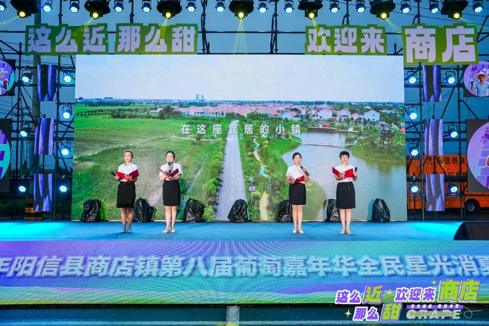 8月8日晚,山东省阳信县商店镇第八届葡萄嘉年华全民星光消夏盛典活动在雨中隆重开幕。尽管天降小雨,活动仍如期举行,现场群众热情不减,共同开启这场夏日盛会。