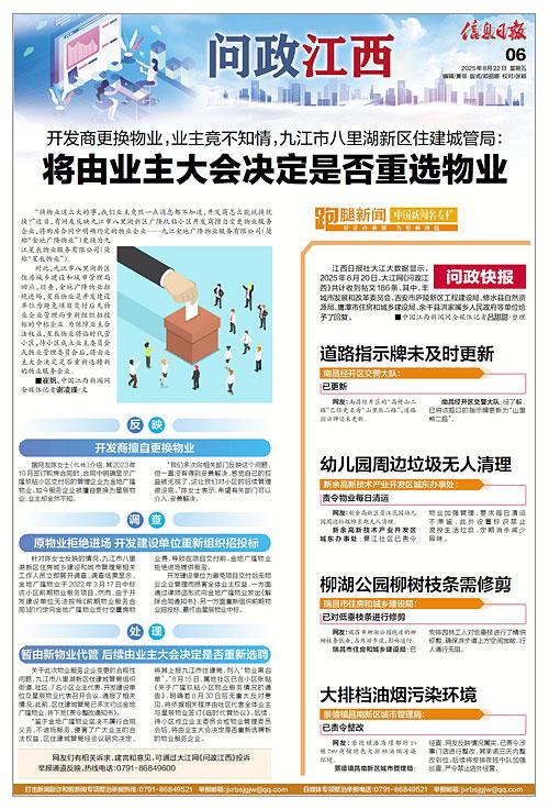 江西日报社大江大数据显示,2025年8月20日,大江网《问政江西》共计收到帖文186条,其中,丰城市发展和改革委员会、吉安市庐陵新区工程建设局、修水县自然资源局、鹰潭市住房和城乡建设局、余干县洪家嘴乡人民政府等单位给予了回复。