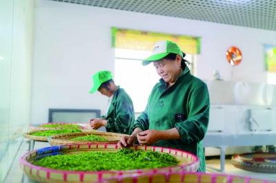 赭洛山茶叶专业合作社基地内,茶农正在挑选优质茶叶。