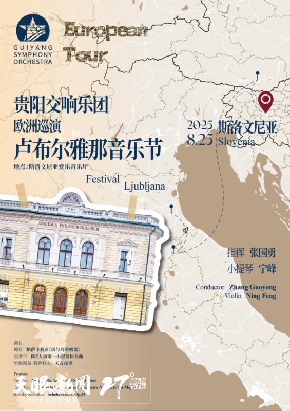 8月22日,贵阳交响乐团启程,首赴欧洲斯洛文尼亚、奥地利、意大利3个国家,将参加4场国际知名音乐节演出。