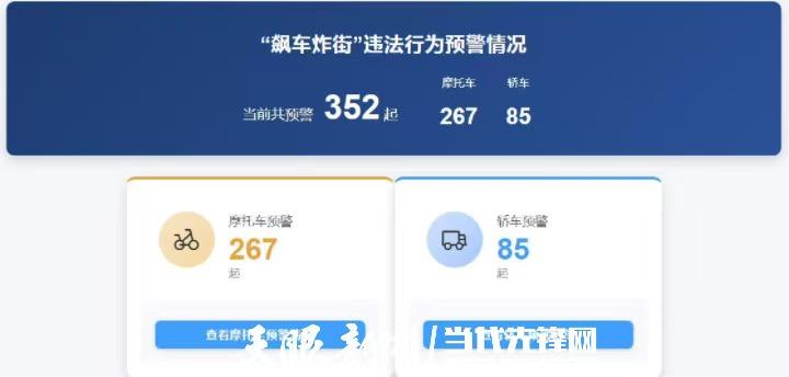 8月11日22点44分,贵阳市公安交通管理局“飙车炸街预警系统”平台推送了一条预警信息:有一辆车牌为贵A0G**7的摩托车在人民大道与黔灵西路交叉口北向南行驶有高度疑似“飙车炸街”行为,系统自动触发预警,民警根据系统线索迅速开展视频追踪排查,飙车人员被精准查获。