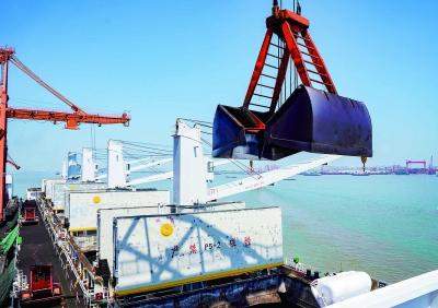 海事人员挥汗“护航”五万吨煤炭卸载工作