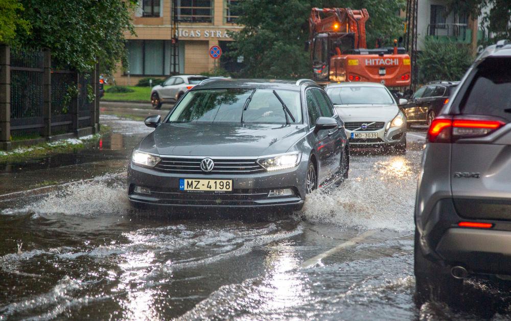 8月26日,在拉脱维亚里加,汽车涉水行驶。