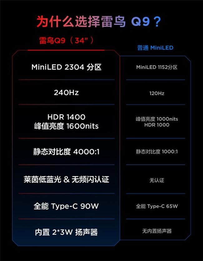在当前3000-4000元价位段,电竞显示器市场存在明显产品断层:传统品牌产品多以牺牲画质换取高刷新率,而高端产品价格则居高不下。雷鸟34Q9以3999元的定价,精准切入这一市场空档,通过2304分区Mini LED背光+HVA面板的差异化组合,实现了"越级配置与合理价格"的完美平衡。
