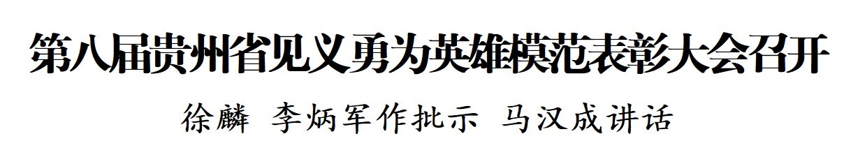 9月6日,第八届贵州省见义勇为英雄模范表彰大会在贵阳召开,隆重表彰25个见义勇为英雄模范个人和群体。省委书记徐麟,省委副书记、省长李炳军作批示。省委副书记、省委政法委书记马汉成出席并讲话,省领导杨永英、罗强、孙诚谊、茆荣华、王永金,中华见义勇为基金会秘书长胡增印出席。