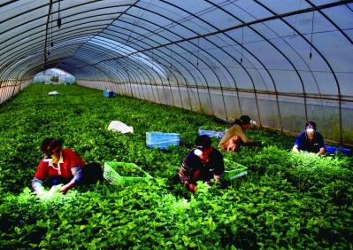 采收好的新鲜蔬菜被运送至南京普仁有机农业公司车间,工作人员立刻对其进行分拣包装。