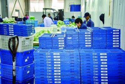分拣包装工作进入尾声,一批批印有“盒马鲜生专用”字样的包装箱已就位,等待装货运输。冷库是保障有机农产品质量的重要环节,采收好的蔬菜一到分拣中心就会被送入冷库中保鲜。