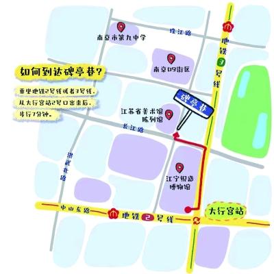 大行宫地铁站前往碑亭巷的手绘地图。 南京日报/紫金山新闻美编 鲍逸倩 制作