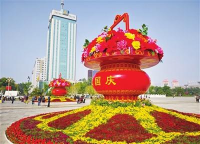 五一广场“欢度国庆”主题花坛。牛利敏 摄