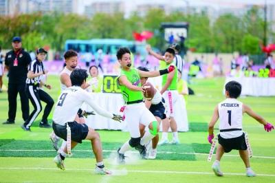 10月2日首个比赛日,乐创汇体育场与扬子江生态公园两大主场人潮涌动,激情与活力在这里碰撞。“传球,快速传球!”“这球漂亮!”上午9时,腰旗橄榄球比赛现场人声鼎沸,球员们的精彩表现,赢得观赛群众的阵阵欢呼。