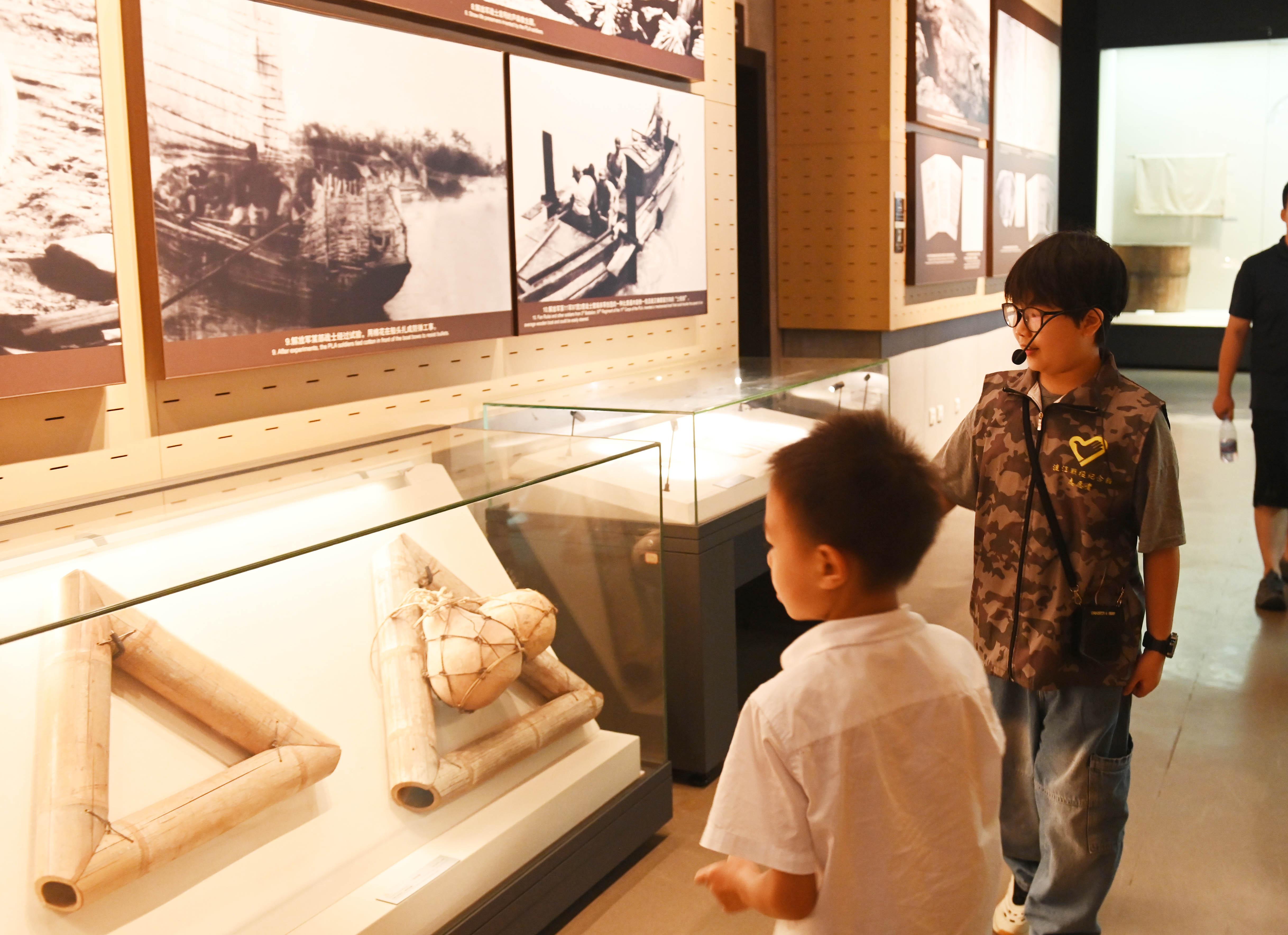 小小讲解员朱允赫正在给同龄人讲述渡江战役。