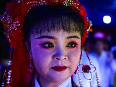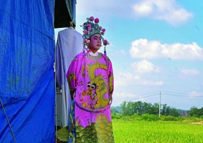 9月下旬,江西上饶地区持续多日35℃以上高温,演员们在大棚里的舞台上、聚光灯下演出,个个汗流浃背。