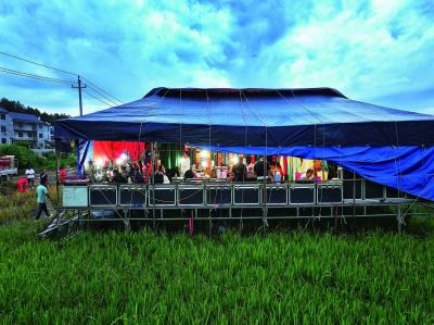 9月23日至29日,溧庆黄梅戏剧团来到江西省上饶市余干县黄金埠镇十八都陈家,在村后公共露天集市上搭建戏台,为村民们演出16场经典黄梅戏。