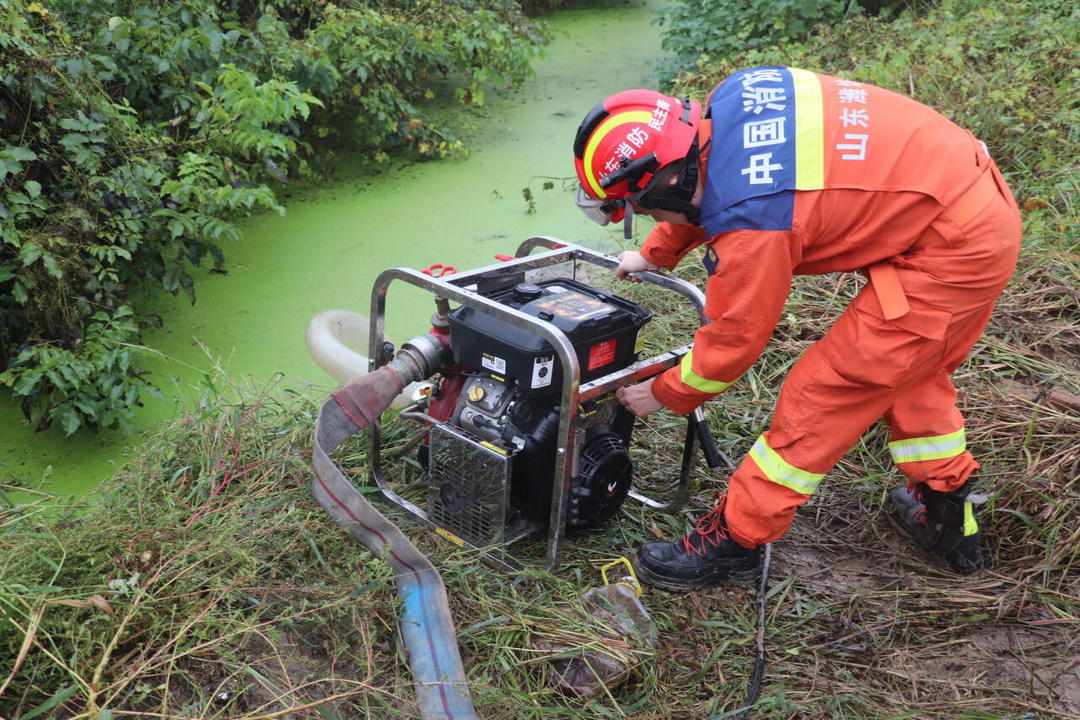 潍坊市经济开发区华疃二村的农田内,积水滞留形成闭流区,秋粮抢收陷入困境。10月12日下午,消防救援人员接到求助后火速赶赴现场。到达任务地点后,救援人员首先对受灾点进行实地勘查,细致评估救援道路通行条件及周边环境安全状况,随后科学制定排涝方案。作业中,重点利用手台机动泵配合街道办事处的潜水泵展开不间断排涝,全力打通秋粮抢收的“堵点”,有效缓解了村民的燃眉之急。