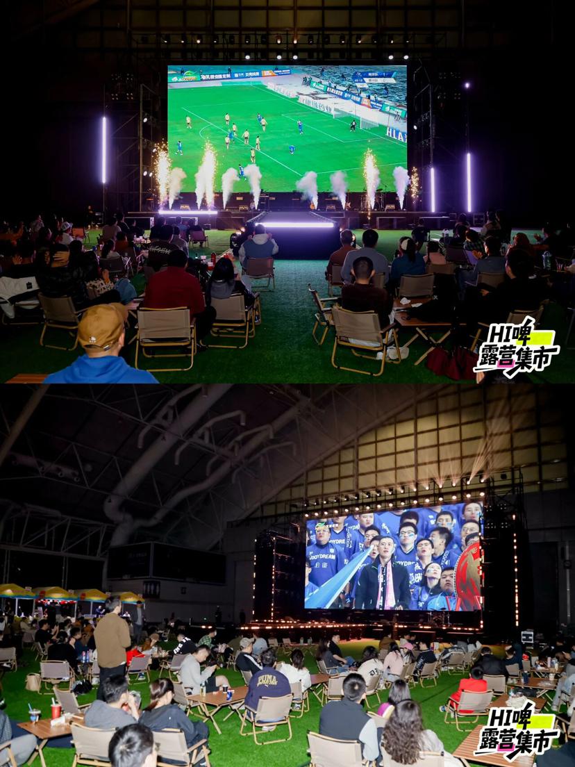 晚间的“HI啤露营集市”,既有文艺范儿,也有“激情时刻”。文创集市上,集结了众多艺术创作主理人,将非遗簪花、纸艺、布艺、陶艺、植物印染等工艺融合现代生活设计,捧出众多匠心好物;速写肖像、乱针绣、艺术文身等互动项目,吸引了不少文艺青年来体验;美食摊位上则集合了手冲咖啡、特调饮品、烤肠、汉堡、意大利和泰国风味小吃等各种美食,让人胃口大开。