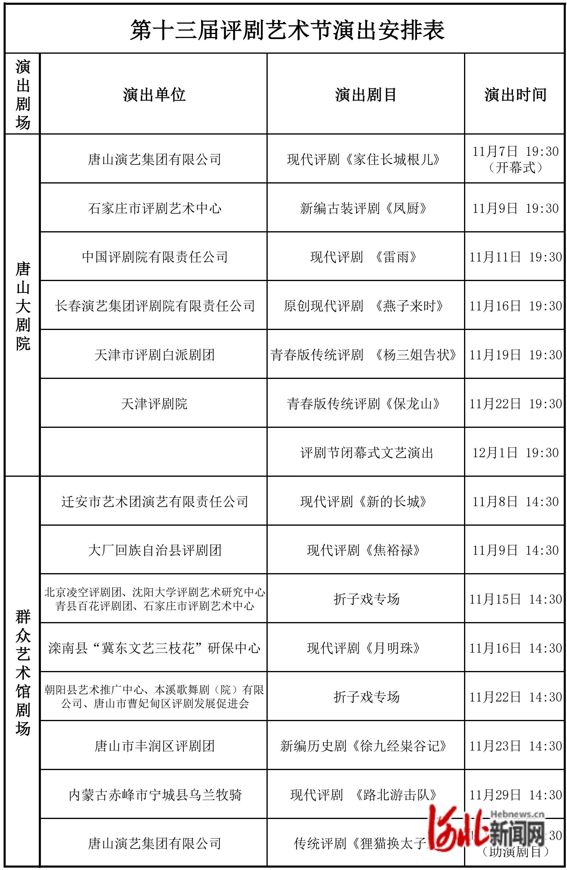 河北新闻网讯(记者师源)从唐山市政府新闻办10月29日召开的第十三届评剧艺术节新闻发布会上获悉,本届评剧艺术节将于11月7日至12月1日在唐山举办。