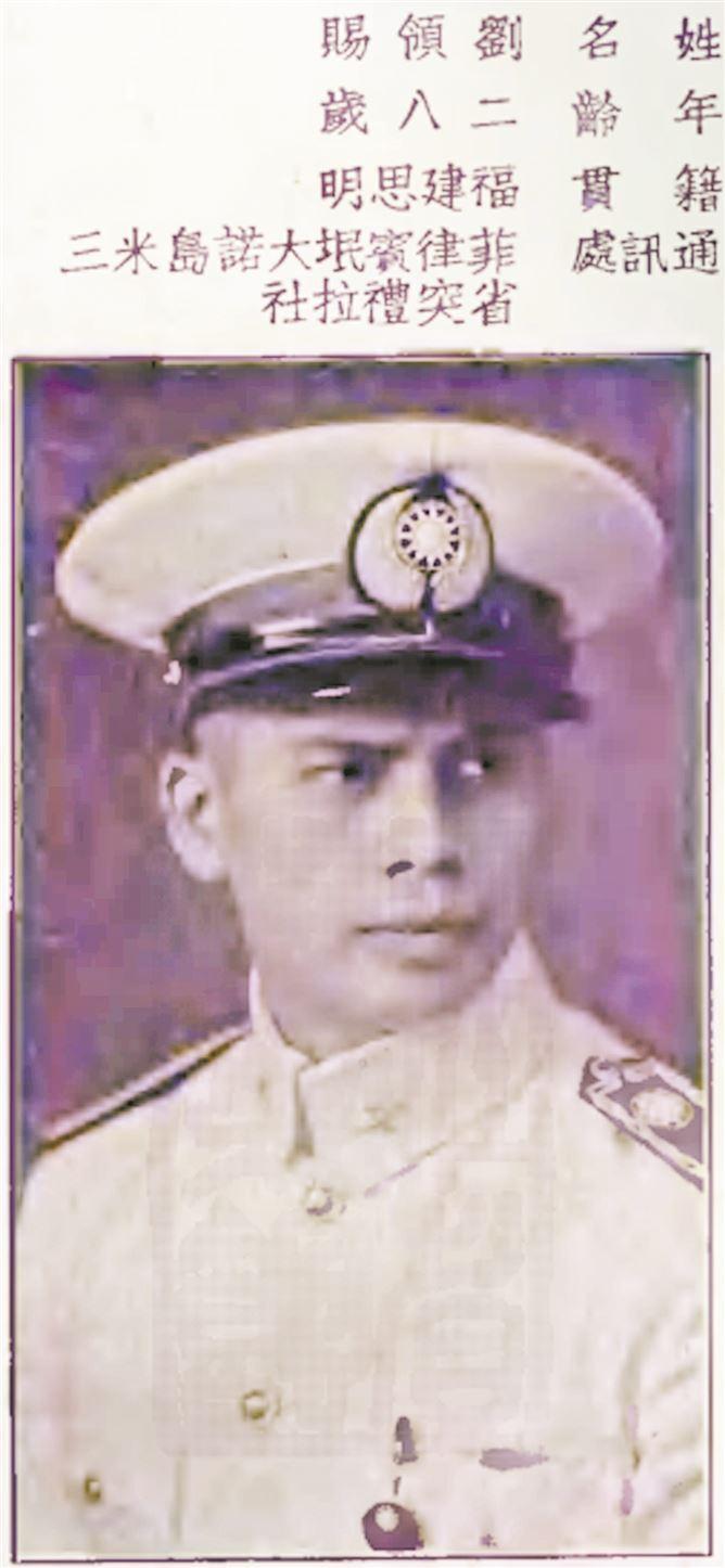 刘领赐出生于1911年,身份是第二代华侨。他的父亲原籍厦门,后在菲律宾马尼拉从事商业活动,并取得了一定成就。
