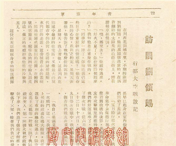 访问刘领赐行都大空战散记(《青年空军》1940年第2卷 第3期72-73页作者章君)