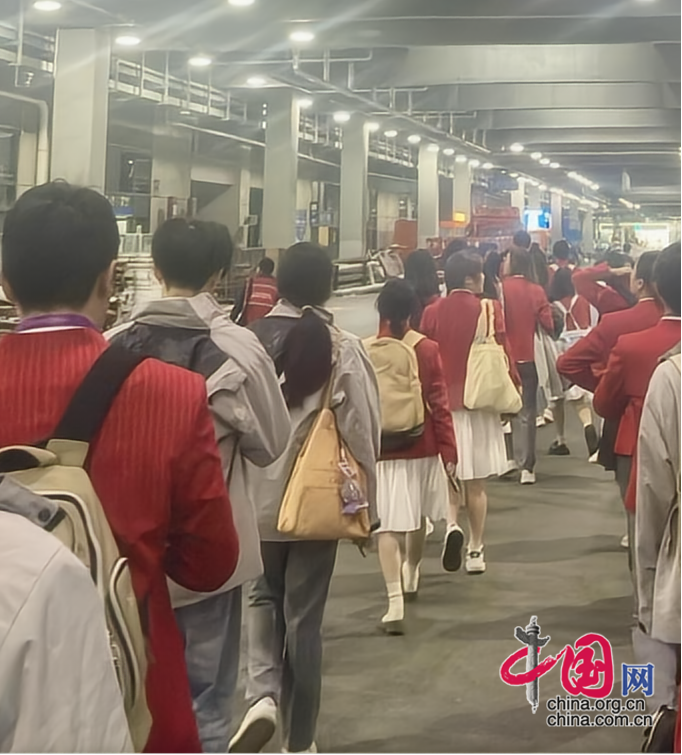 完成一天工作后,“小叶子”们有序退场。上海交通大学土耳其留学生志愿者山恒夫 摄