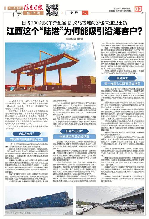 11月7日,江西暖阳高照。在远离城市喧嚣的南昌县向塘镇,坐落着江西省首个陆港型国家级物流枢纽。