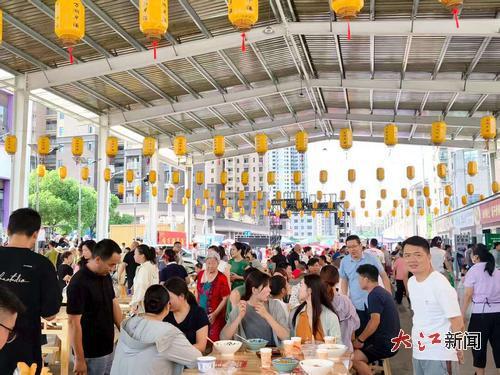 开市当晚,人潮涌动,气氛火爆。附近居民纷纷前来打卡,更有外地游客慕名而来。“这里离集市近,买菜吃饭都很方便,还有一些特色摊位,价格也实惠。”一名社区居民笑着说。开业期间,万湖夜市日均客流量逾8万人次,连续三日荣登抖音同城热搜榜首。2024年5月,万湖夜市重装升级,“泰心动”主题活动首夜人流量超5万人次。