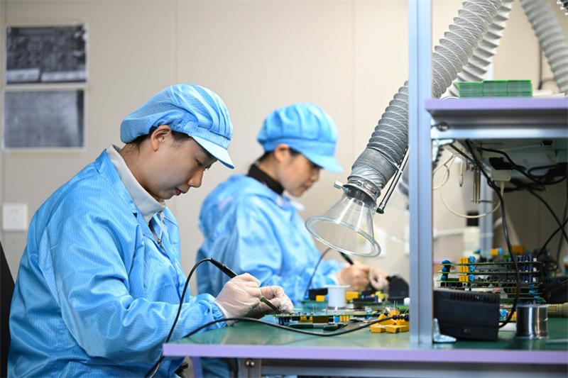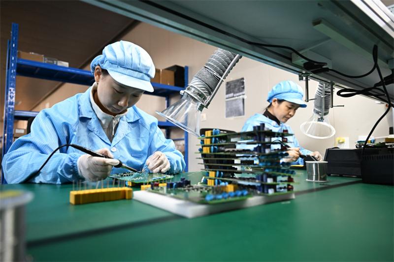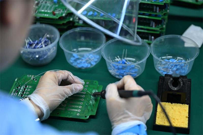 11月16日,位于宁晋经济开发区的河北云控动力技术有限公司员工在进行变频器线路板焊接作业。