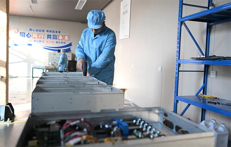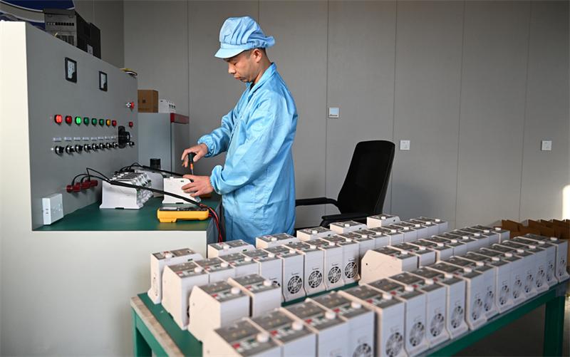 11月16日,位于宁晋经济开发区的河北云控动力技术有限公司员工在进行变频器组装作业。