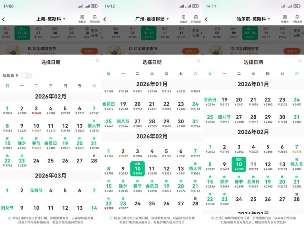 同程旅行平台上,正在推出旅游冰雪季特惠,最高可领取600元东北红包、1500元欧洲红包等。俄罗斯、挪威、芬兰和冰岛都是热门的出境玩雪目的地。“9天7晚圣彼得堡+莫斯科+俄罗斯+谢镇+冬宫+克宫+夏宫花园跟团游”“9天7晚·摩尔曼斯克+莫斯科+圣彼得+萨米村+追光之旅+摩尔曼跟团游”“8天6晚·春节热卖免签俄罗斯莫斯科+尔曼斯克双城4飞8日三次追光体验”都是热门线路,热门团期主要集中在明年1月和2月。相较于其他北欧国家的极光路线,俄罗斯的性价比尤为突出,成本可低至一半甚至以上。陈煜
