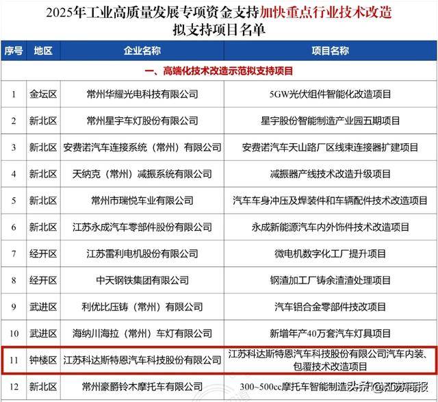 近日,常州市工信局公示2025年