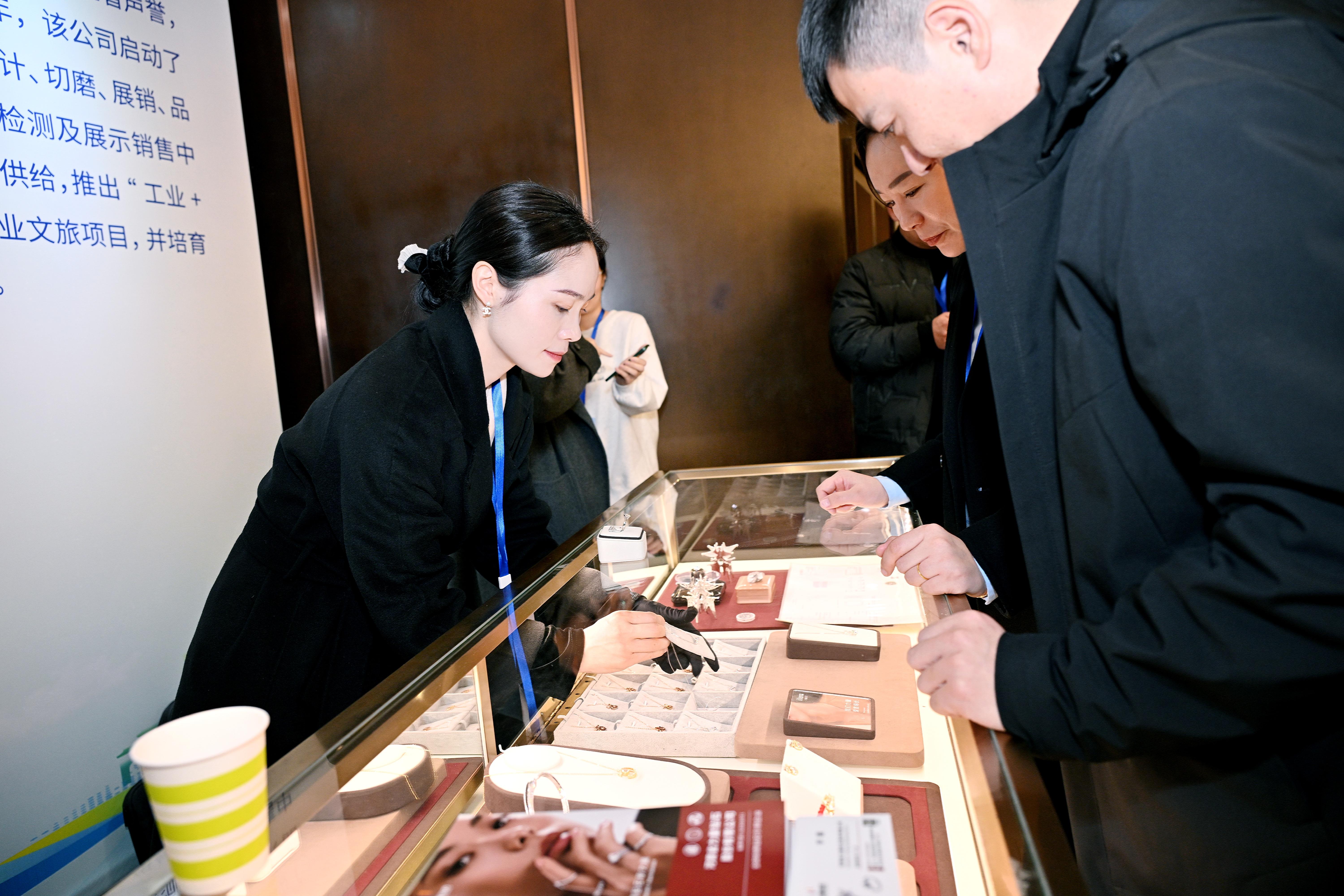 材料革命与产业链整合的河南故事,在力量钻石与大美珠宝的相邻展位同步上演。展区内,培育钻石在灯光下熠熠生辉,引来不少人的关注。“我们正在构建集智能制造、创意设计、精密加工与品牌展销于一体的全新发展生态。”企业展区负责人李众峰介绍。与力量钻石的纵向延伸不同,大美珠宝展现的是横向覆盖的广度与深度,作为一家全品类珠宝电商供应链企业,它构建了从玉石原料、研发设计、生产加工到全域销售的完整生态。