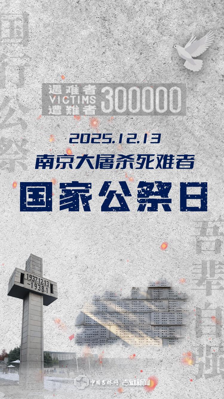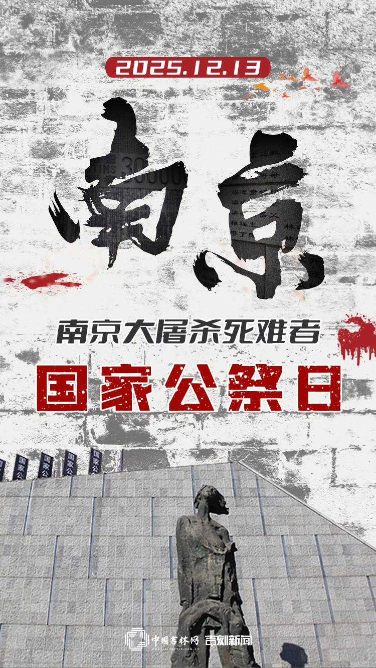 国家公祭日丨88年,民族之痛不能忘不敢忘! 2025-12-13 06:20 来源:中国吉林网 1937年12月13日,侵华日军野蛮侵入南京,制造了惨绝人寰的南京大屠杀惨案,这是人类历史上无比黑暗的一页。 今天(2025年12月13日),是第12个南京大屠杀死难者国家公祭日。南京城曾遭遇的苦难,不能忘。日本侵略者骇人听闻的反人类罪行,不会忘。以史为鉴,吾辈自强!中国吉林网 吉刻新闻设计 张圣欣图片来源 新华社本期编辑 吴美慧