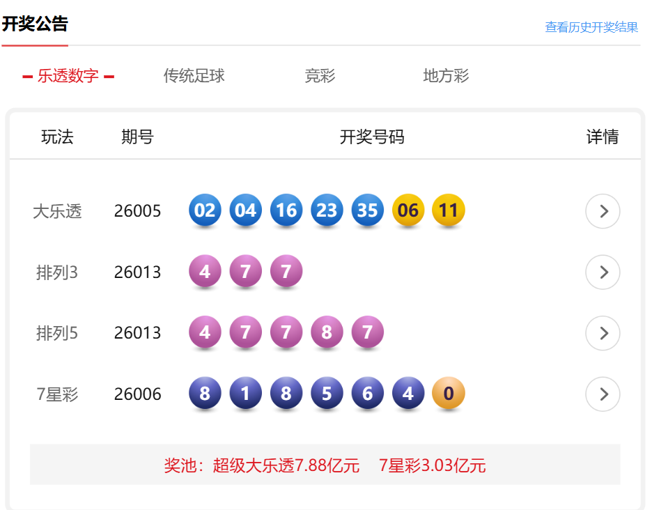 大皖新闻讯 1月13日晚,中国体彩网更新了彩票开奖公告。具体如下: