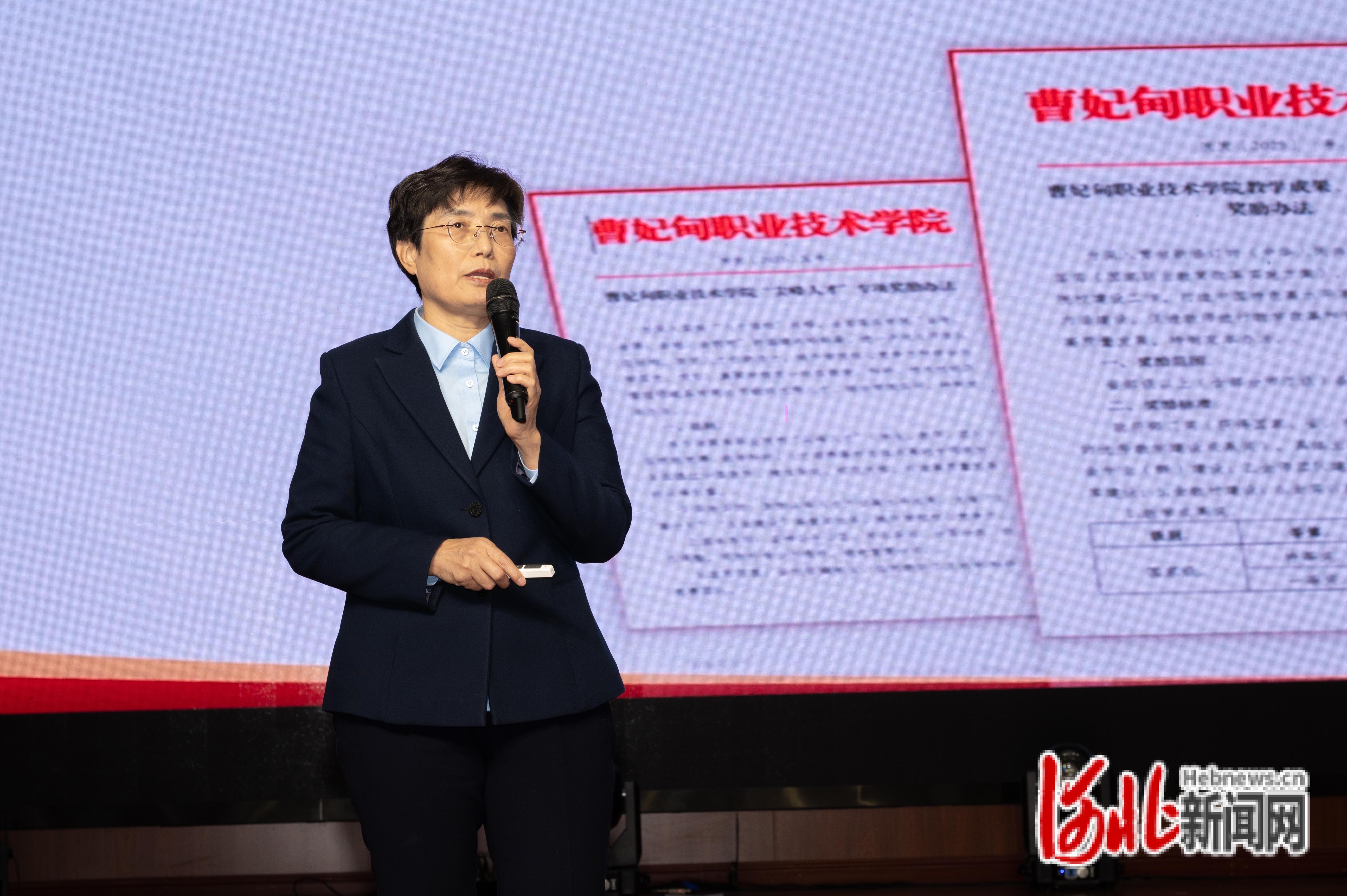 图为曹妃甸职业技术学院党委书记王艳丽主持会议。河北日报记者郭宝强摄
