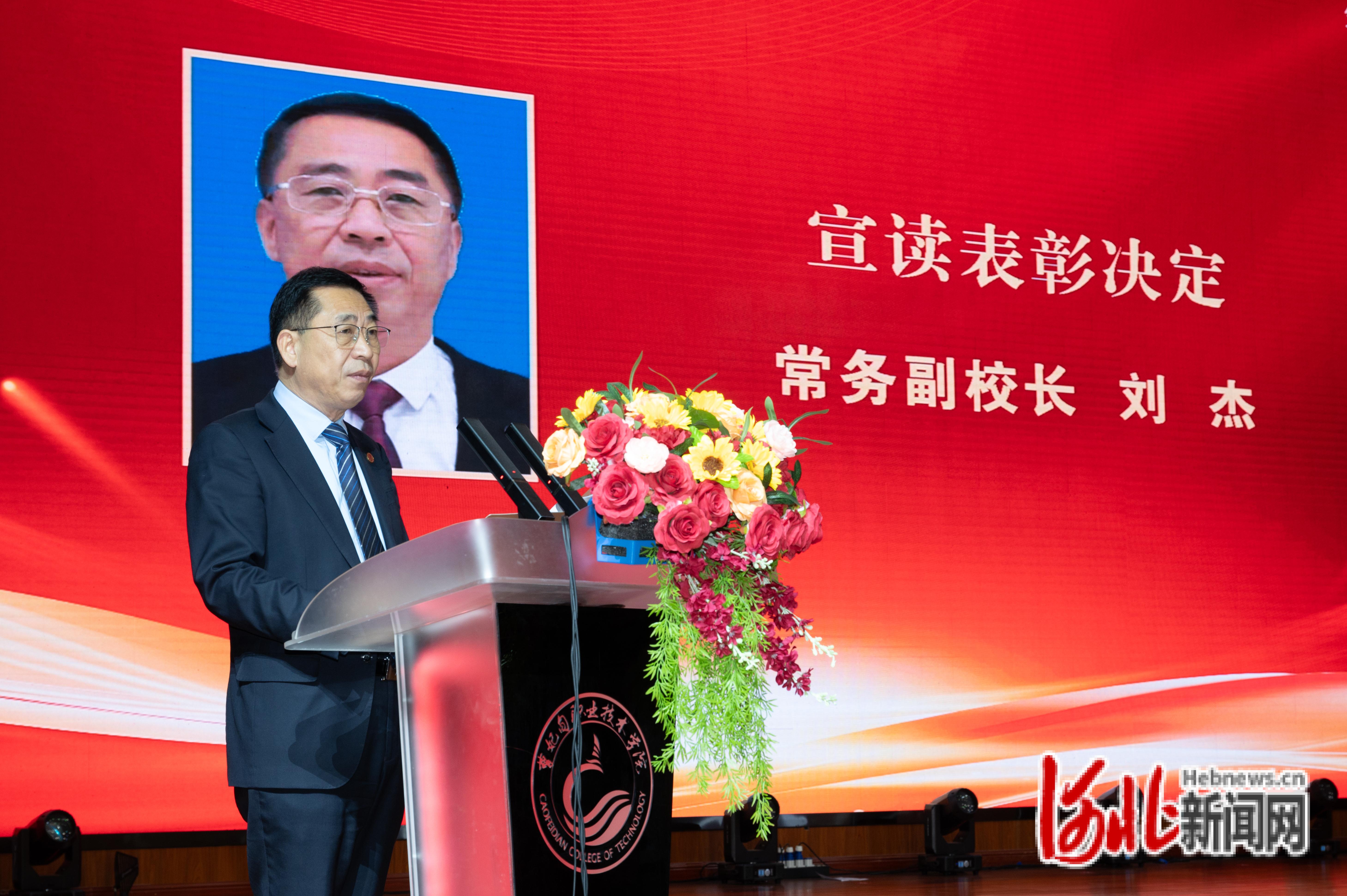 图为曹妃甸职业技术学院常务副校长刘杰宣读表彰决定。刘佳豪摄