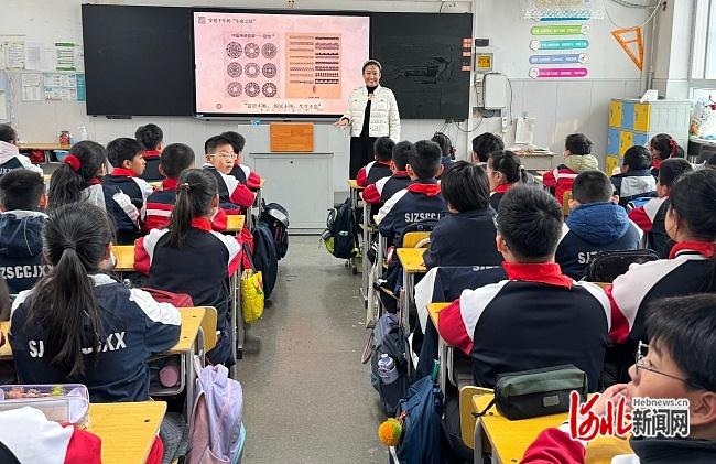 河北新闻网讯(薛薇 石磊)近日,石家庄市草场街小学南校党支部书记兼校长王燕以“守护文化根脉,争做传承少年”为主题,为五年级22班的师生开展了一堂深刻而生动的思政课。课程从中华回形纹、秦琵琶等传统纹样与文物故事入手,深入阐释了文化自信的内涵及时代价值。