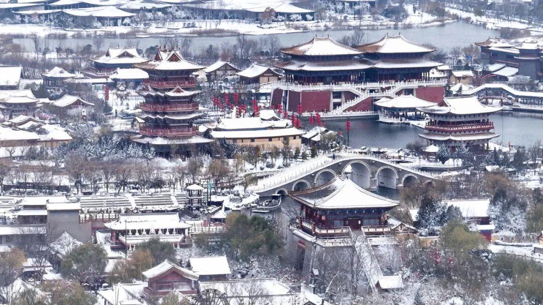 看,雪落在了洛阳城,不就是“天街飞辔踏琼英,四顾全疑在玉京”的古韵?看,雪落在了开封府,不就是王禹偁《对雪》诗里所写的“窗牖琼花坠”“飘飘满天地”的意象吗?