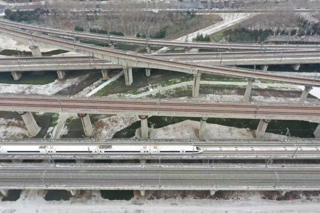 雪中的高铁线路。图片来源:“郑州铁路”微信号