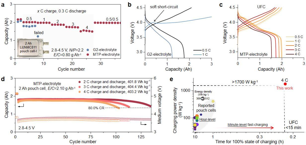 实用化锂金属软包电池的超快充性能