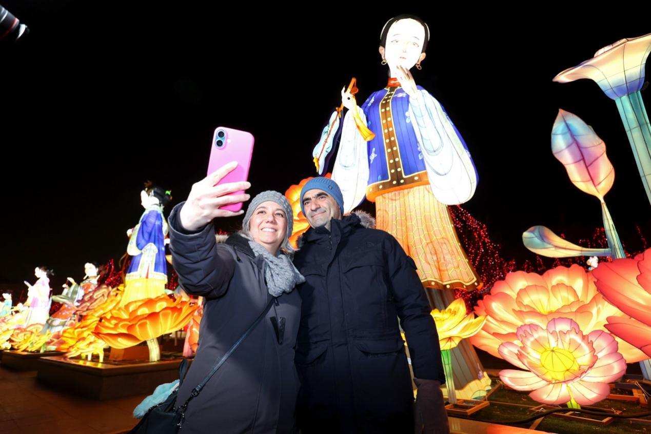 2月3日,土耳其驻华大使夫妇在杨柳青灯展自拍留念。(海外网 谢明 摄)