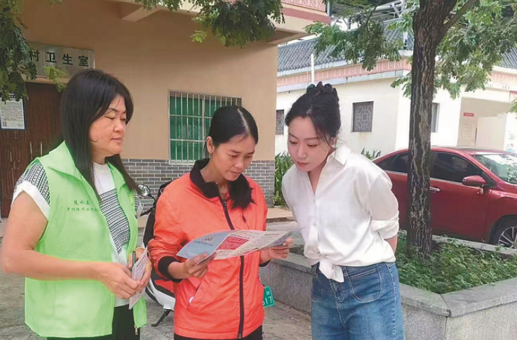 邴心迪(右)在走访村民。(朝美村村委会供图)