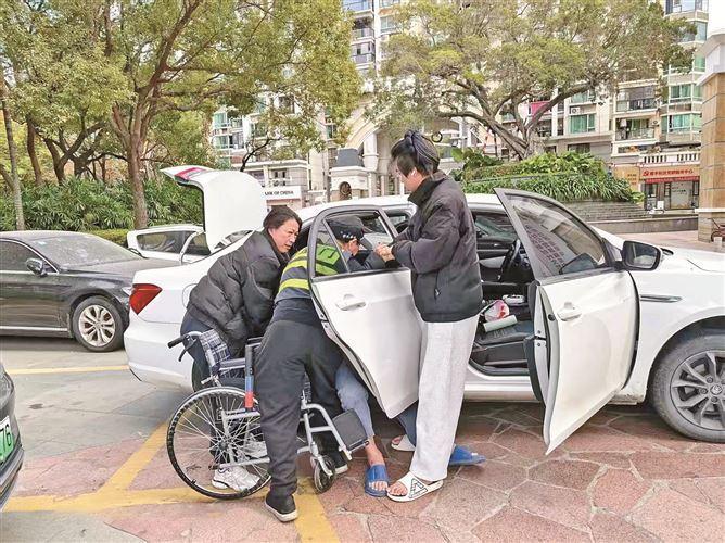 协助行动不便市民上车。