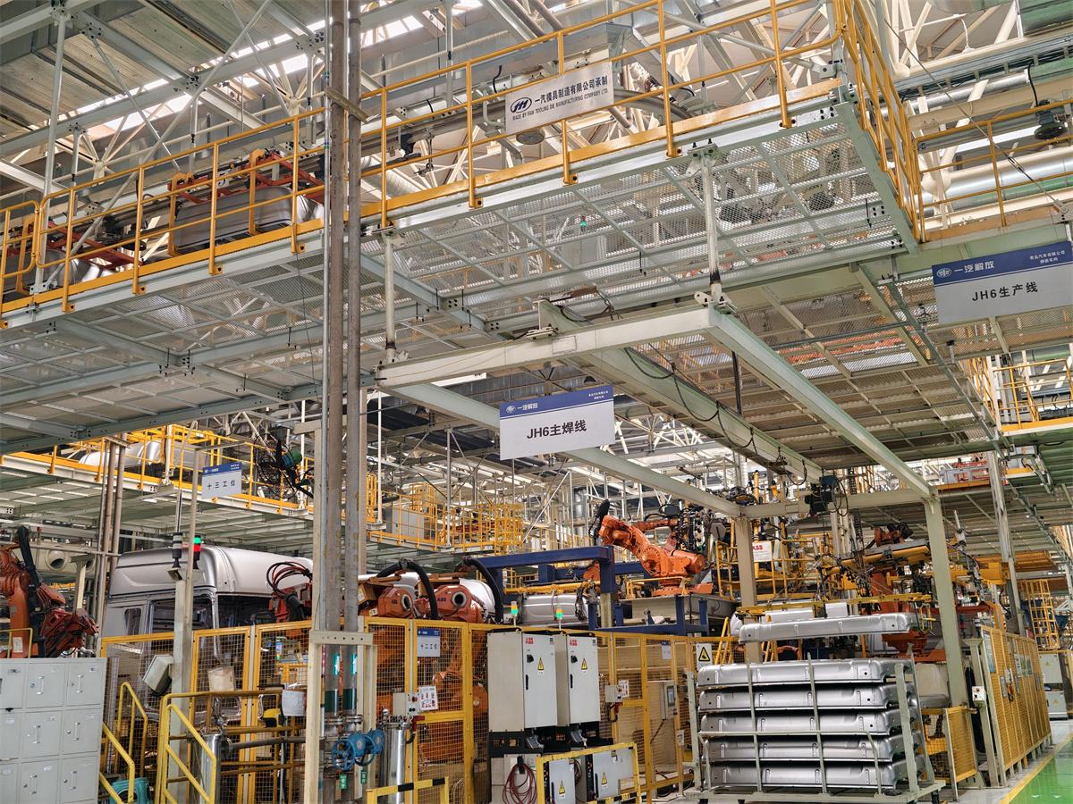 “这么近?”有记者惊讶。这正是青岛汽车产业新城的布局密码。解放青汽公司即墨工厂的冲压、焊装、涂装、总装配等卡车四大工艺水平均居国内领先地位,将自动化、柔性化与智能化装备完美融合,被工信部授予“商用车智能工厂试点示范”称号。