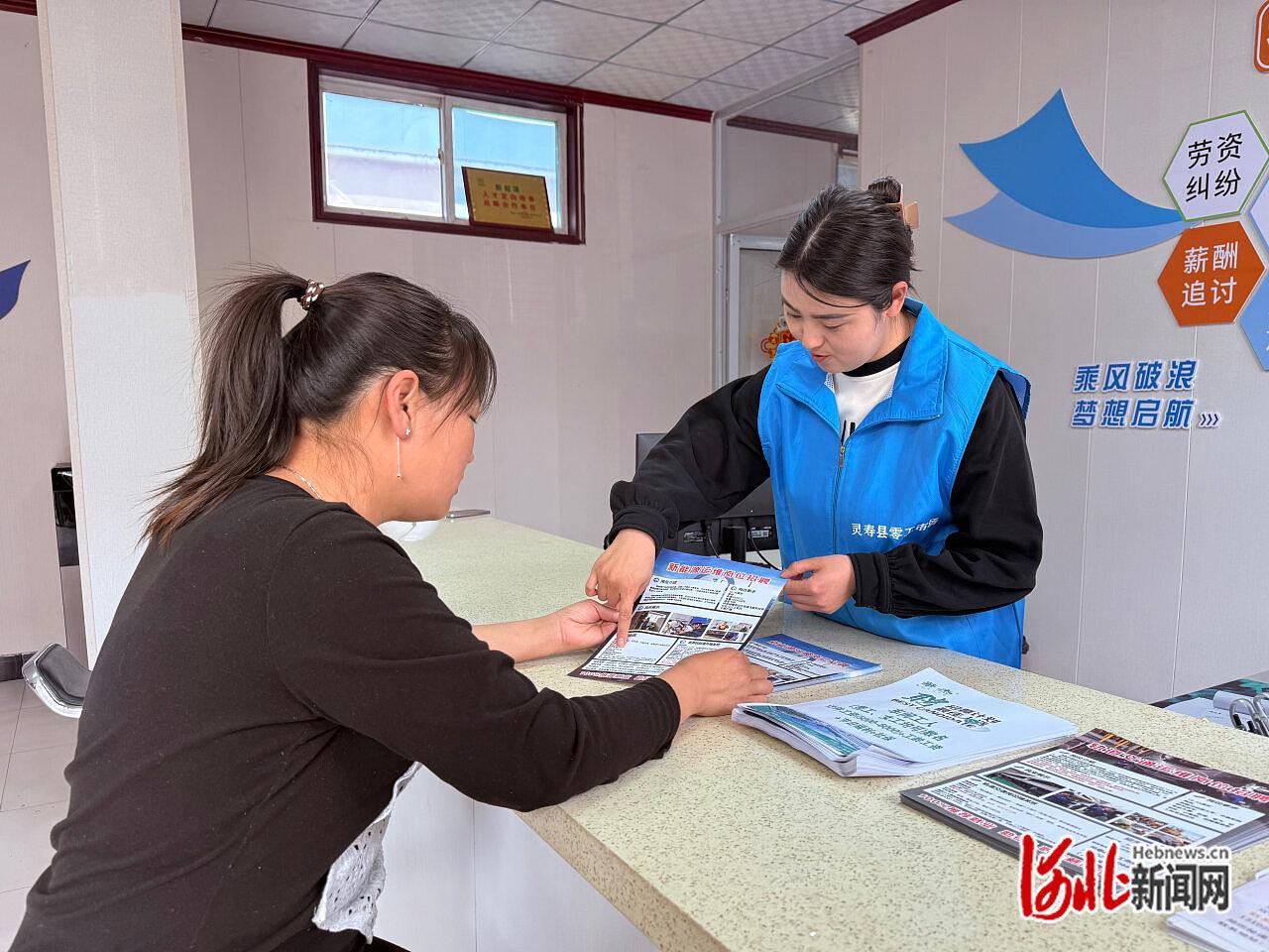 3月17日,石家庄市灵寿县零工市场内,工作人员正在向求职者推荐岗位。河北日报见习记者 侯淼摄