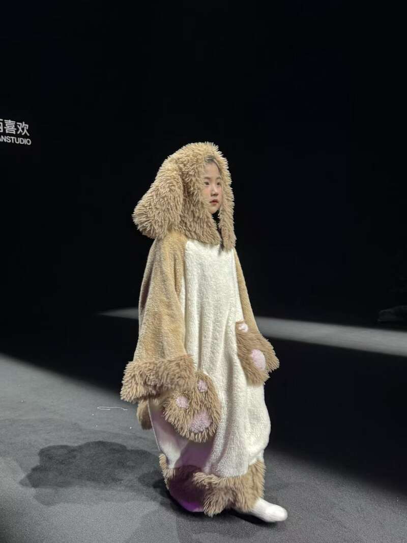 小设计师带来的睡衣系列打破了传统风格,立体的小动物兜帽、爪爪手套和绒球尾巴点缀其间,童趣十足。中青报·中青网记者 夏瑾/摄