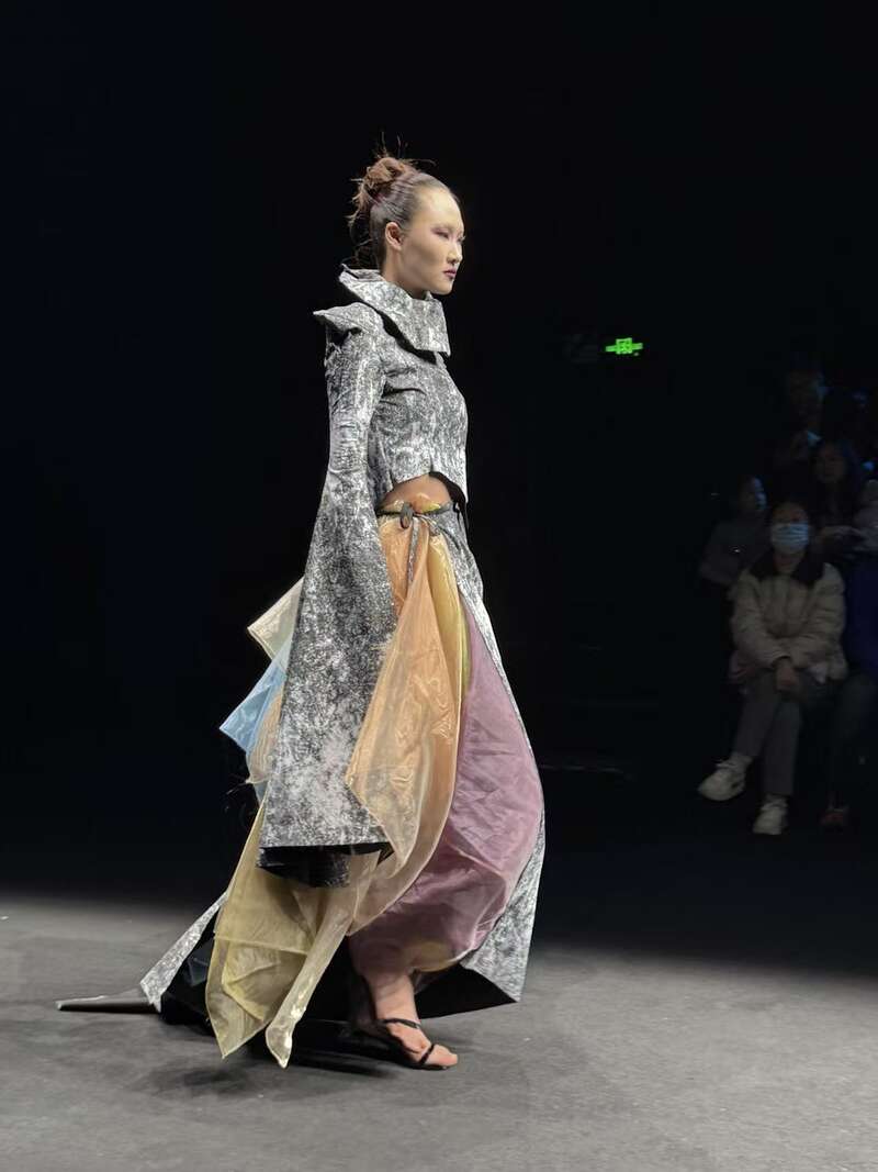 秀场上,一组以《山海经》元素为主题的设计尤为引人注目。小设计师们以现代视觉语言重译上古神话,将“九尾狐”“青耕”“烛龙”等形象融入服装设计,用色彩碰撞与夸张廓形重构神兽。