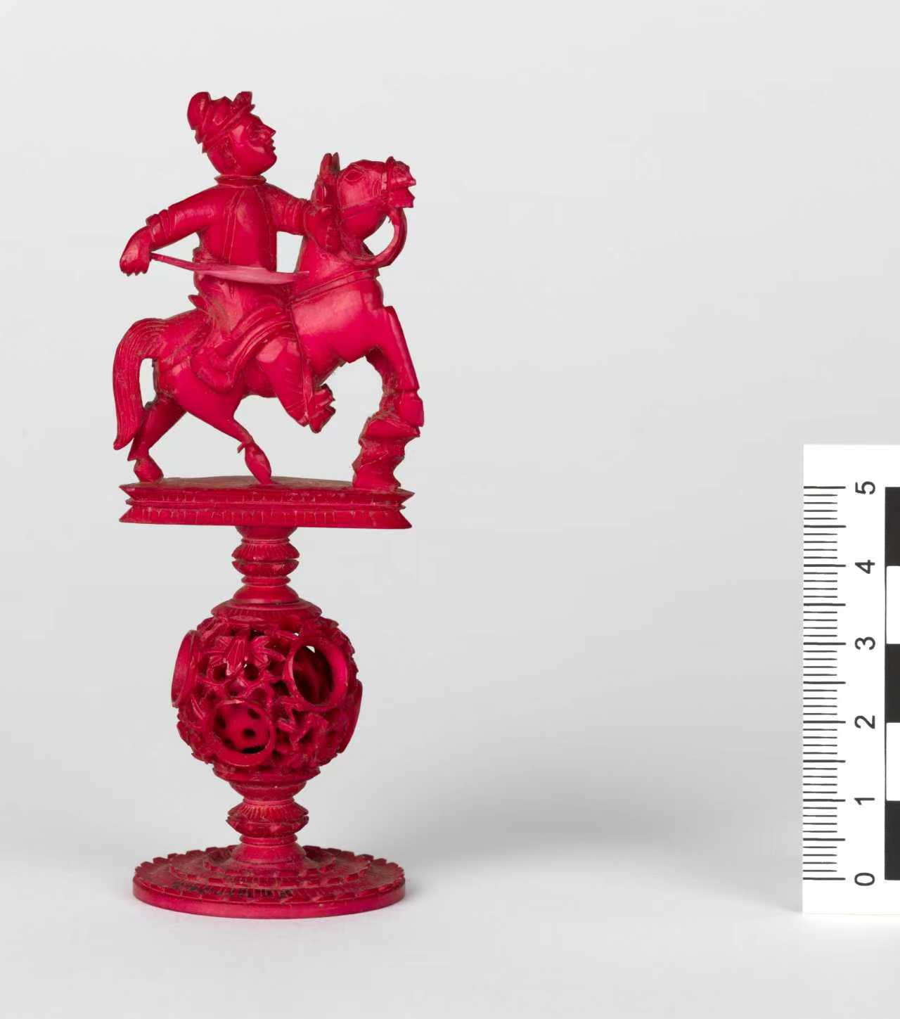 一枚染色的中国“玲珑球”风格的象棋棋子,专为出口而制,由《通往中国之桥》项目成员选作研究对象。