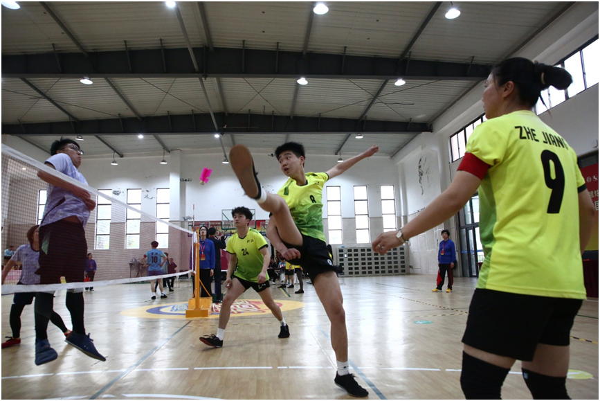 在赛场上,运动员们身姿矫健、配合默契,时而后场大力扣杀,时而前场轻巧吊球,攻防转换节奏明快,技战术运用娴熟流畅。对阵双方斗智斗勇、你踢我接,每一次精准传递、每一轮精彩攻防都扣人心弦,精湛球技赢得现场观众阵阵掌声与喝彩,赛场氛围热烈高涨。