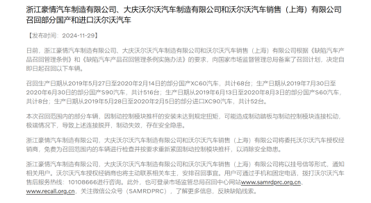 (沃尔沃XC60召回公告)