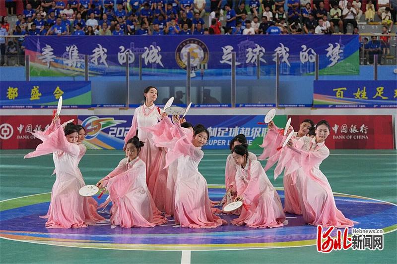 2025年9月6日晚,“河北五超”辛集主场,辛集队迎战石家庄队,中场休息时举办文艺展演。(河北日报资料片)周浩洋摄