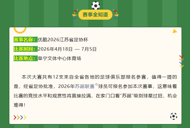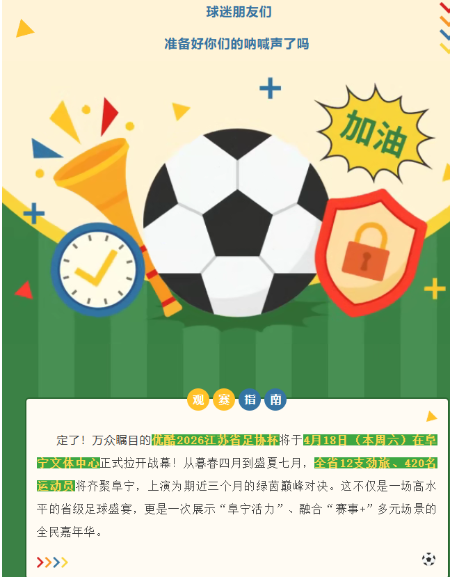 周末开赛!优酷2026江苏省足协杯空降阜宁!观赛指南+最全攻略